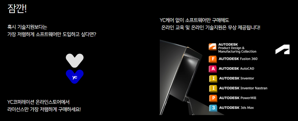 해당 사이트에 업로드되는 유료 교육도 YC에서 소프트웨어를 구매하면 무료 수강코드를 제공해드립니다.