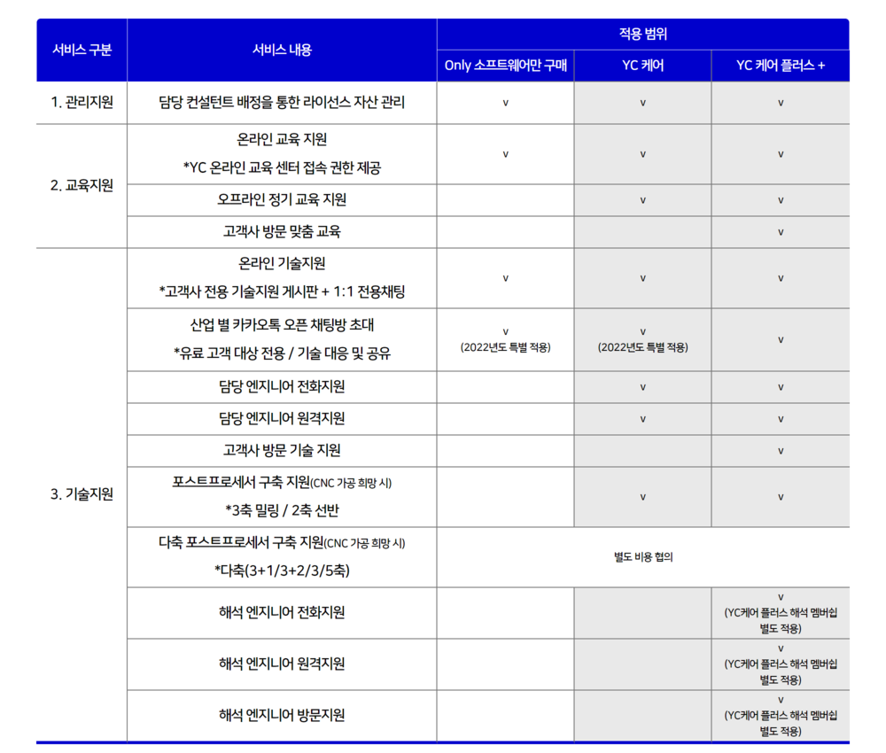 -> 기술지원서비스 옵션에서 'YC 케어 플러스 + '를 선택하세요.